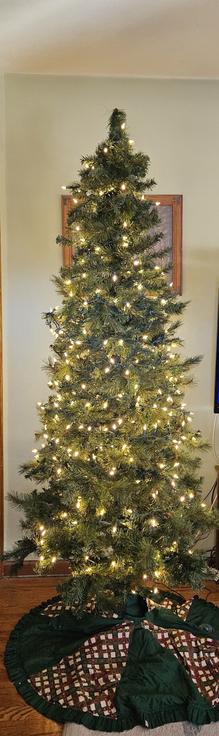 It’s a 4 1/2 foot prelit tree with a timer and a remote with many functions. Of course, I prefer the warm white lights. (I’ll try to share a better shot of the tree in an upcoming post)