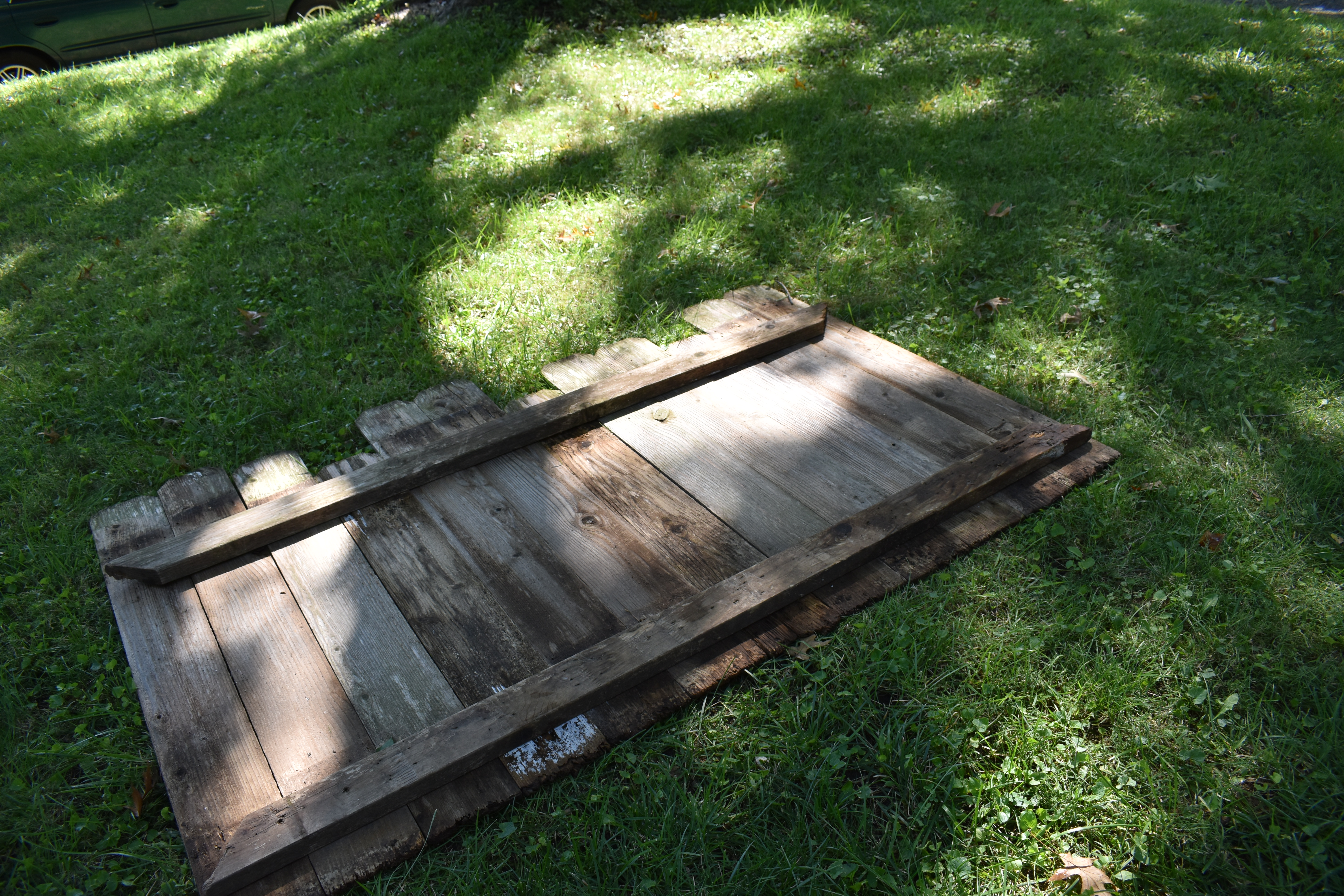 I actually started my Earth Day project back in the fall. Well, I finished it the first time in the fall. At that time, we took our disassembled gate and turned it into a little plant holder for in front of the porch. I filled it with mums. ![]()